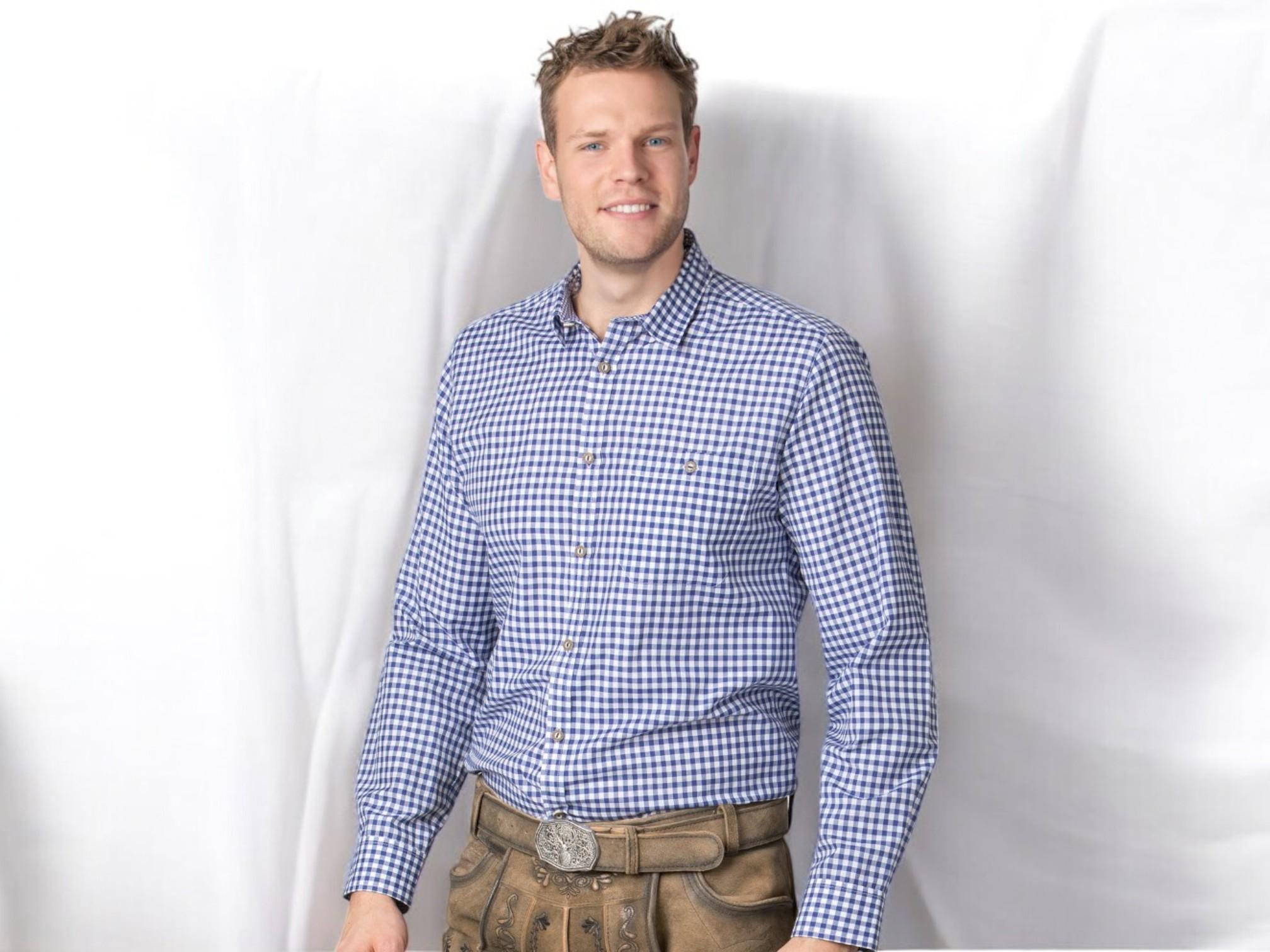 The "August" traditional shirt from Trachtenhans is a true classic, boasting high-quality craftsmanship and a traditional design. Crafted from comfortable fabric and featuring a stylish check pattern, this shirt is the ideal addition to any traditional outfit. It pairs perfectly with your favorite trousers and is the perfect companion to our traditional vests and jackets.